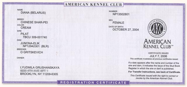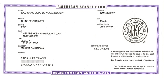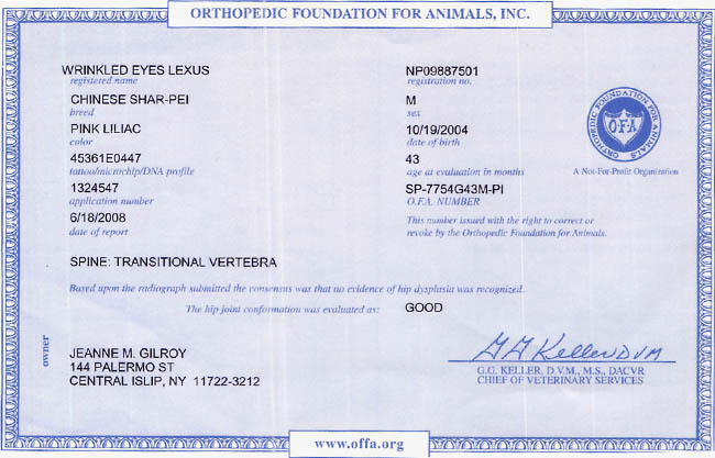 Chinese Shar-Pei "Lexus" Sir 2009 Pedegree
