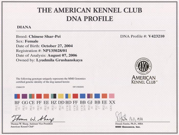 Chinese Shar-Pei "Lexus" Sir 2009 Pedegree